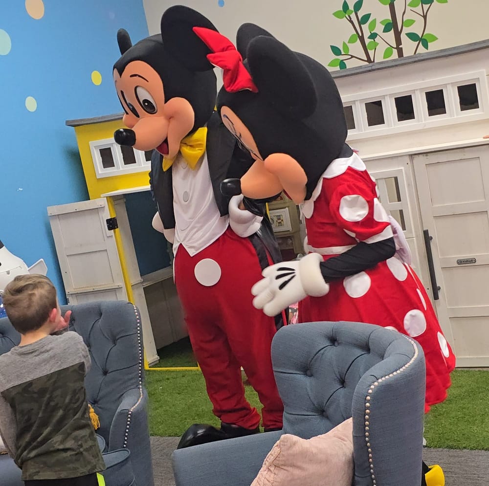 Oh, and did you know we even had Stitch, Mickey and Minnie stop in for a quick play time with some friends? Sooo much fun!